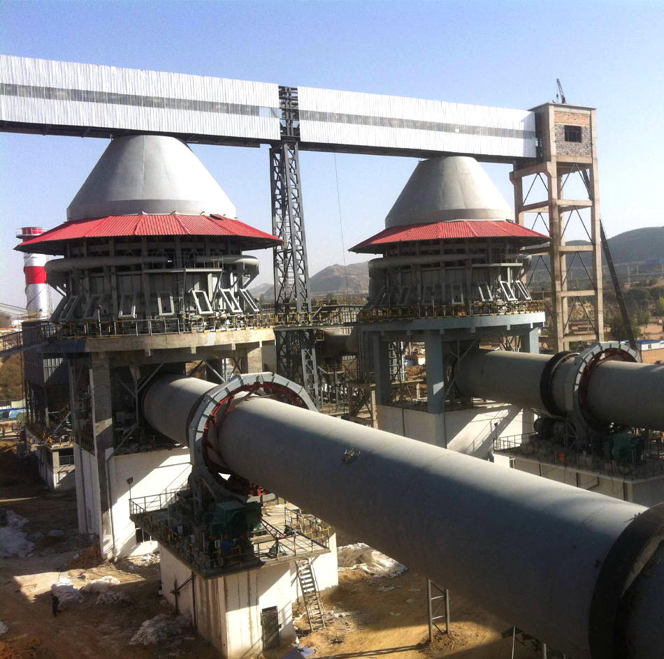 物料在筒體內(nèi)受熱均勻、充分、熱傳遞迅速,另一方面物料和氣體逆向流動(dòng),熱量得到充分利用,廢氣通過(guò)窯尾的預(yù)熱器,熱量被二次利用與烘干物料,成品石灰?guī)С龅臒崃拷?jīng)窯頭下的冷卻機(jī)轉(zhuǎn)換成熱氣流又轉(zhuǎn)回窯內(nèi),大大提高了窯的熱效率。